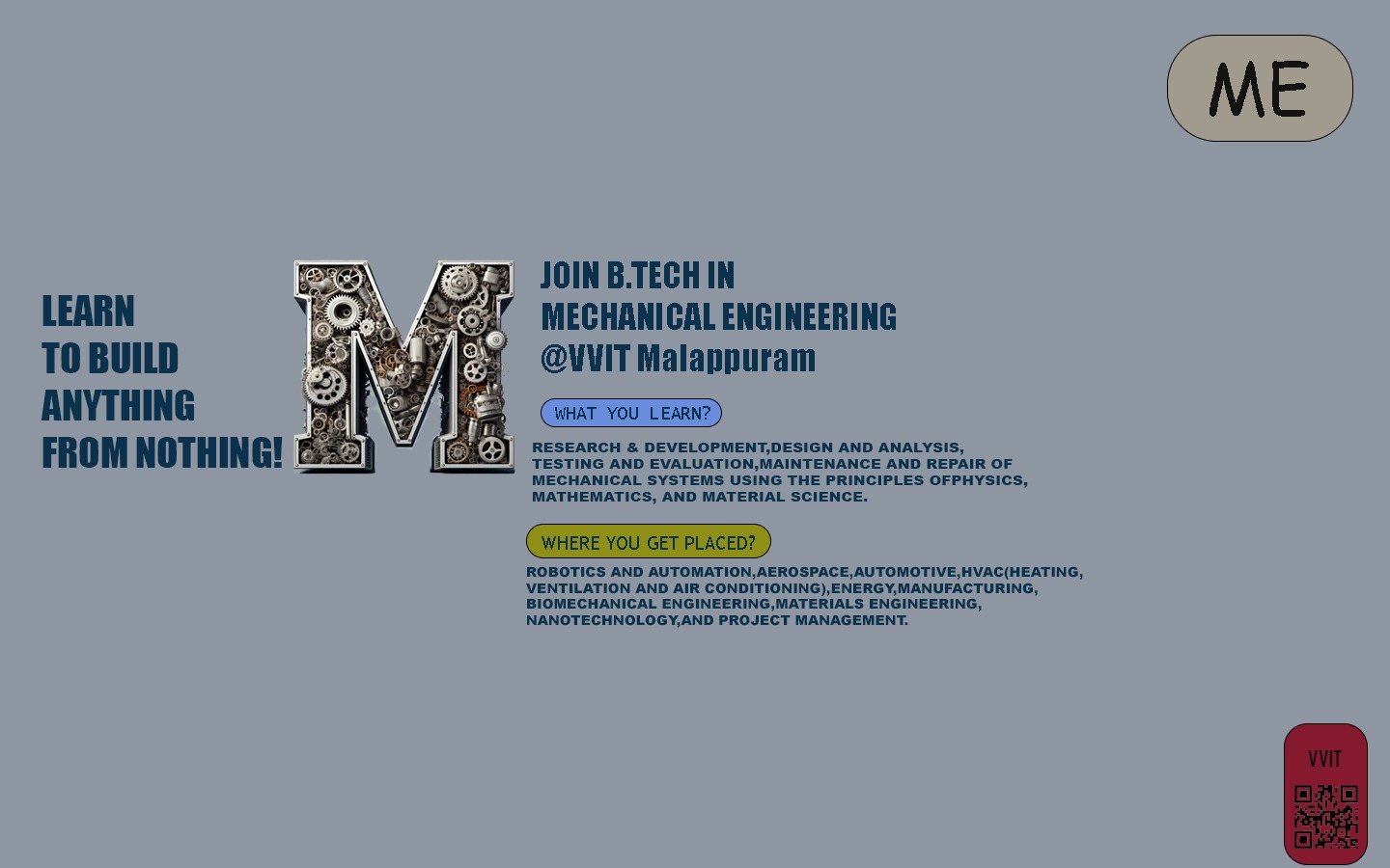 We extend a sincere and warm welcome to the Engineering aspirants to one of the top engineering colleges in Kerala to make use of our infrastructure as well as highly spiritual and academic atmosphere to become successful Engineers of tomorrow. Vedavyasa Institute of technology is a self-financing Engineering College established in the year 2004 and is under the Vedavyasa trust. It is situated between the borders of Calicut and Malapuram districts. VVIT is one among the top engineering colleges in Kerala affiliated to APJ Abdul Kalam University, University of Calicut and approved by Government of Kerala and All India Council for Technical Education (AICTE)...
