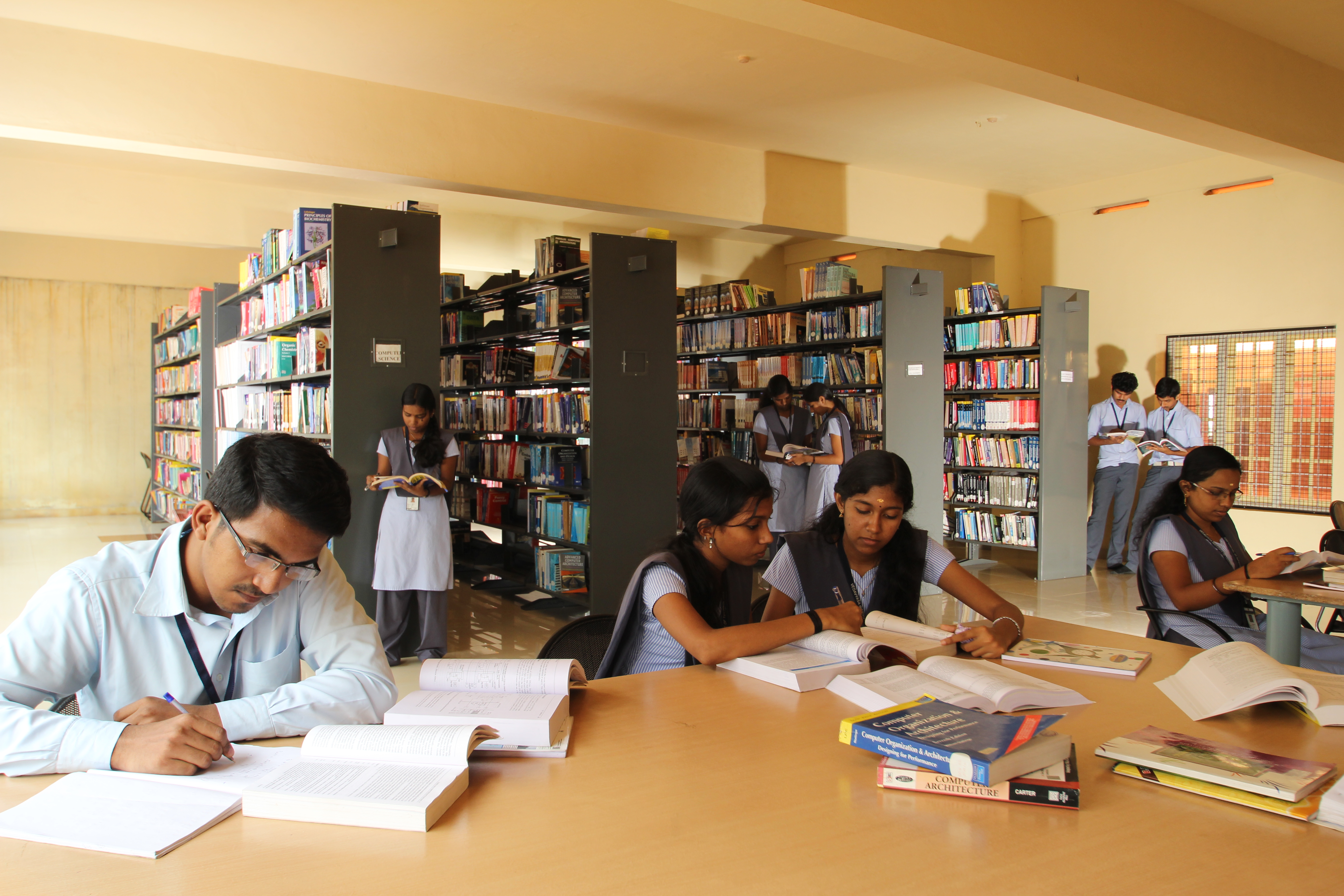 The College has built a spacious Central Library spanning a total floor area of 600 sq. m. Combining aesthetics with utility, the modern Library houses more than 25,000 documents consisting of Technical Books, Full Text E-Resources, Bibliographic Databases, Journals both print and on-line, Digital resources, Reports, Theses, Standards and back volumes of journals. The library subscribes to more than 54 printed journals and technical magazines. Library follows the open access system. The Library also subscribes to E-Books and E-Journals The Library is Automated with provision for Research Scholars Cubicle, Stack Section, Reference Section, and Circulation Section with computers and other peripherals connected in LAN. The Reference section has open as well as closed access. It also has a network linked Photocopier installed to enable students to make printouts/copies.